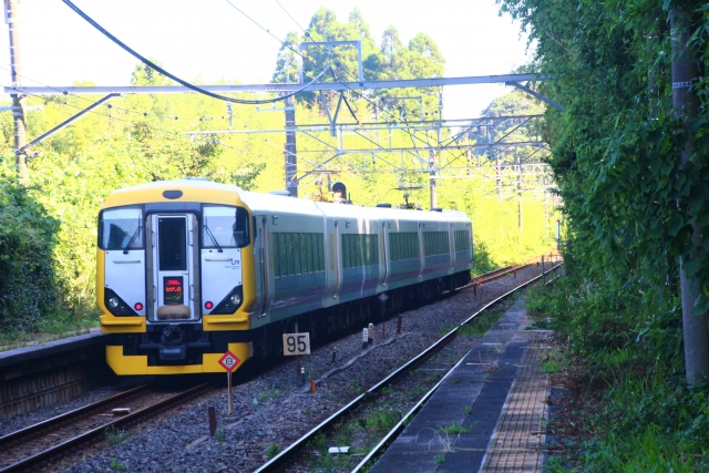 あえて東京駅から「特急わかしお」を利用し、ゆったり車窓を眺めながら移動する。