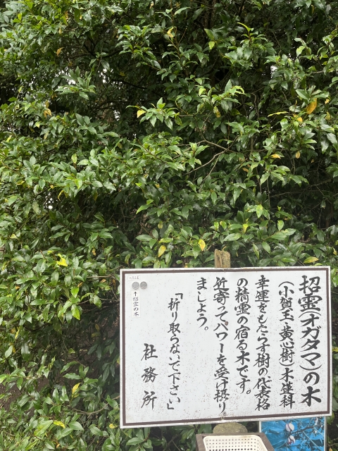 幸運をもたらす招霊(オガタマ)の木があります。