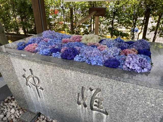 右側に花手水の手水舎が。
