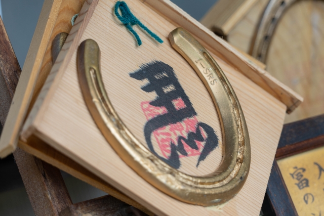馬の蹄鉄がついている蹄鉄絵馬です。