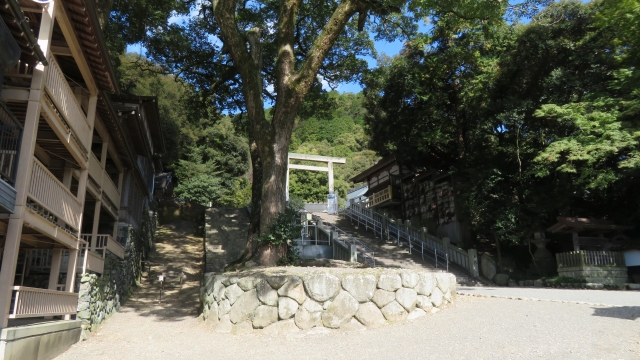 多度大社の境内は、御本殿に向かって緩やかながら長い坂道が続きます。