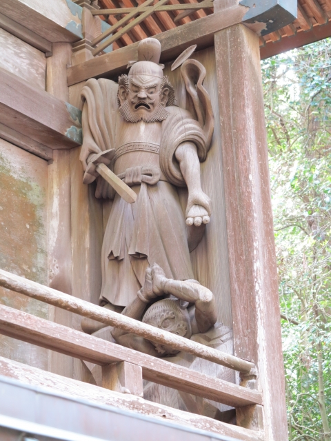 御祭神の伝説にまつわる彫刻が施されています。