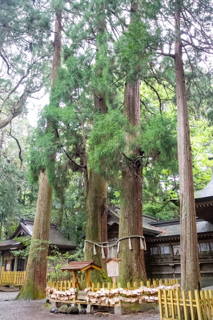 拝殿に向かって左側に夫婦杉があります。