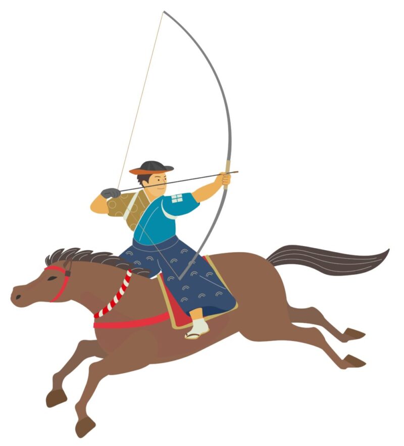馬に乗った射手が矢を放つ、