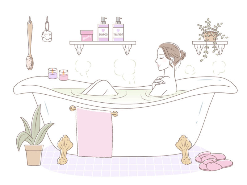 バスソルトを入れた湯船に浸かり、そっと目を閉じてください。